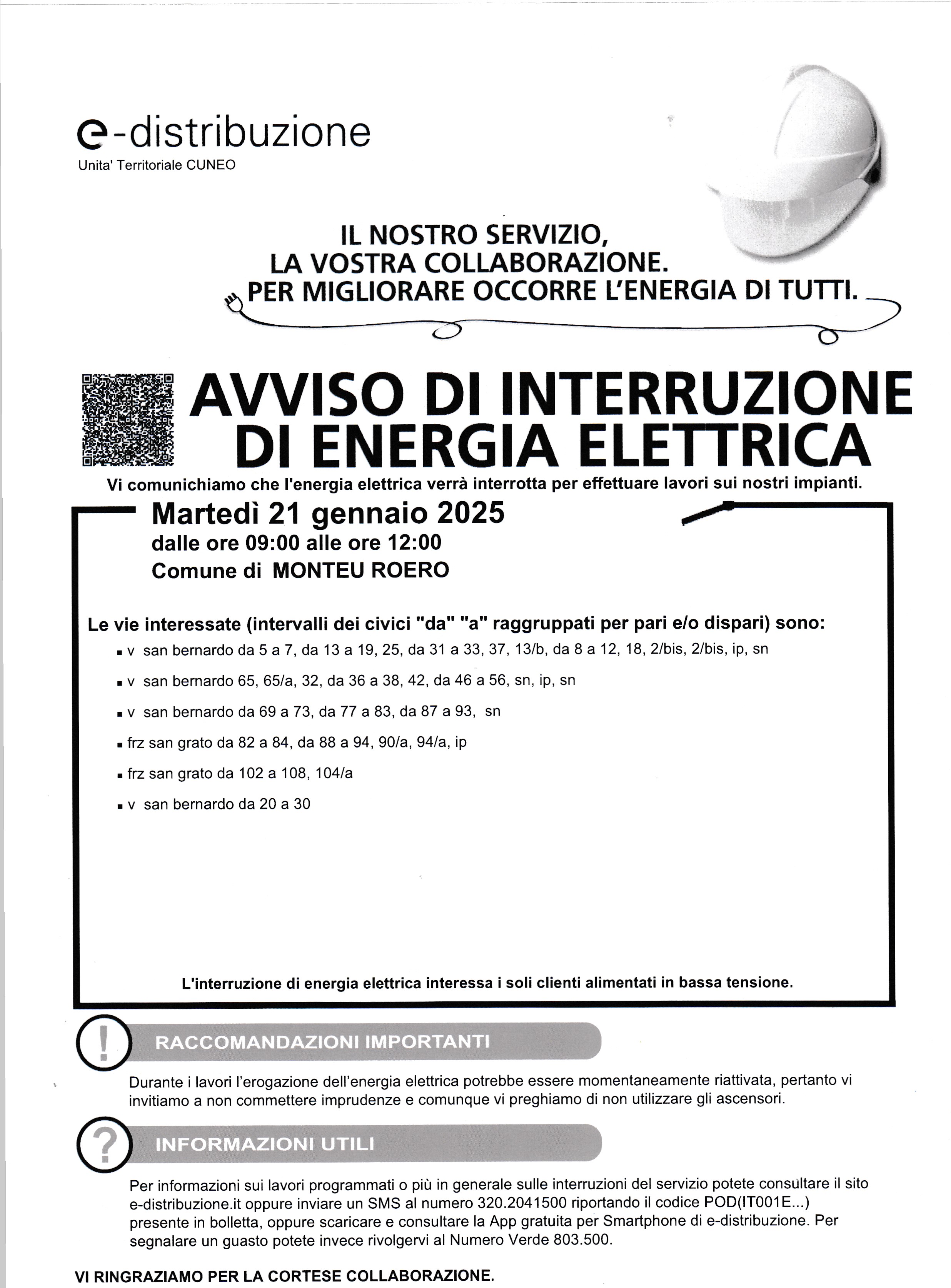 AVVISO DI INTERRUZIONE DI ENERGIA ELETTRICA N. 1