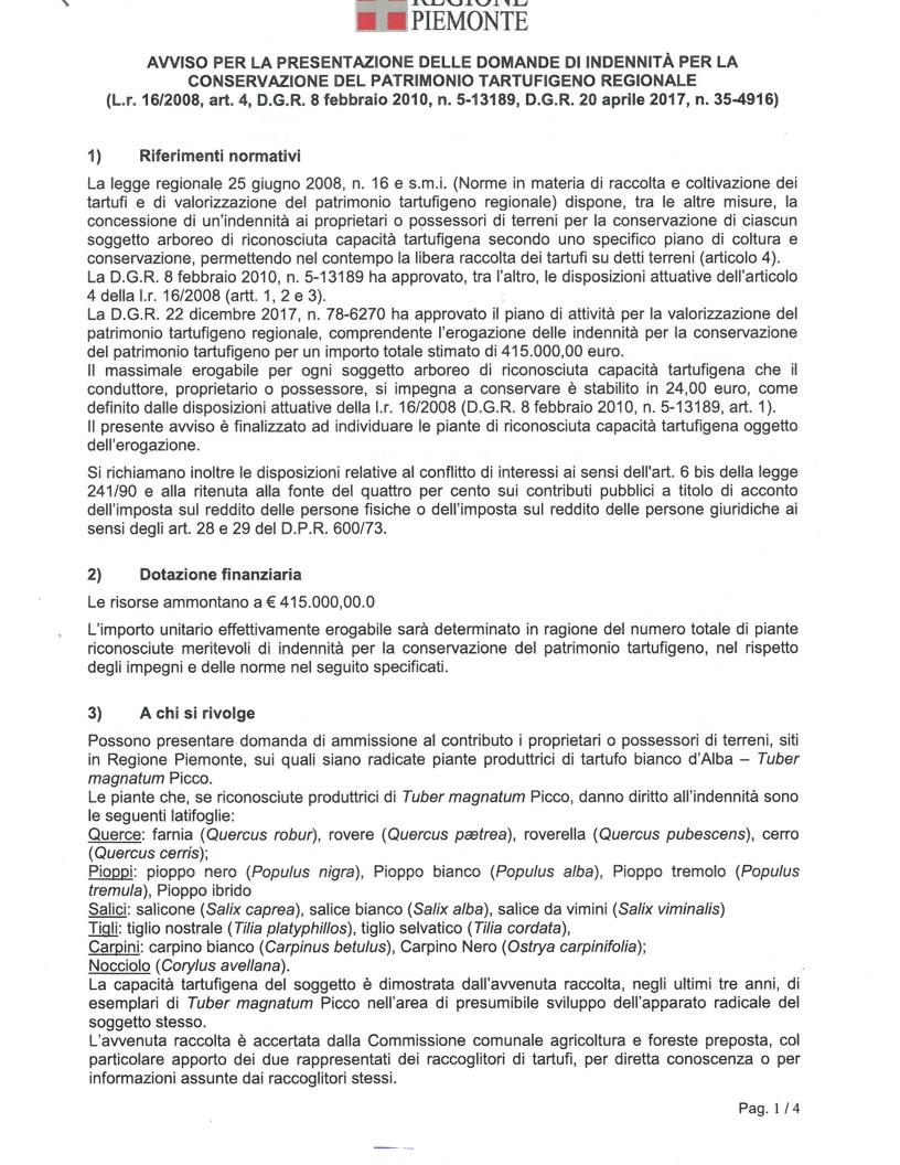 Avviso per la presentazione delle domande di indennità per la conservazione del patrimonio tartufigeno regionale